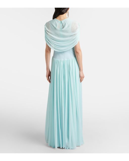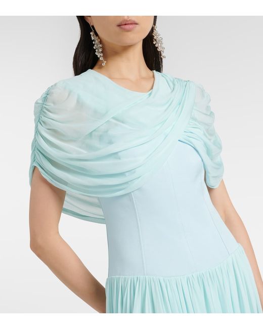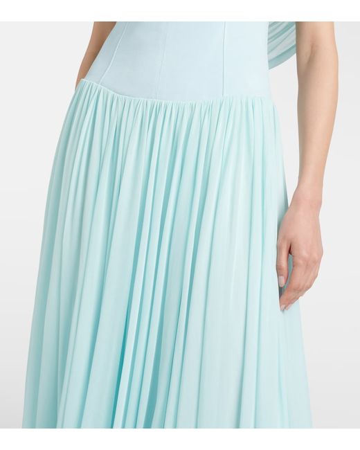 Material: 100% viscose. Care instructions: dry clean. Made in China. Designer color name: Sky. Trim: 79% rayon, 15% nylon, 6% elastane. Lining: 94% rayon, 6% elastane. Closure: concealed zipped back.