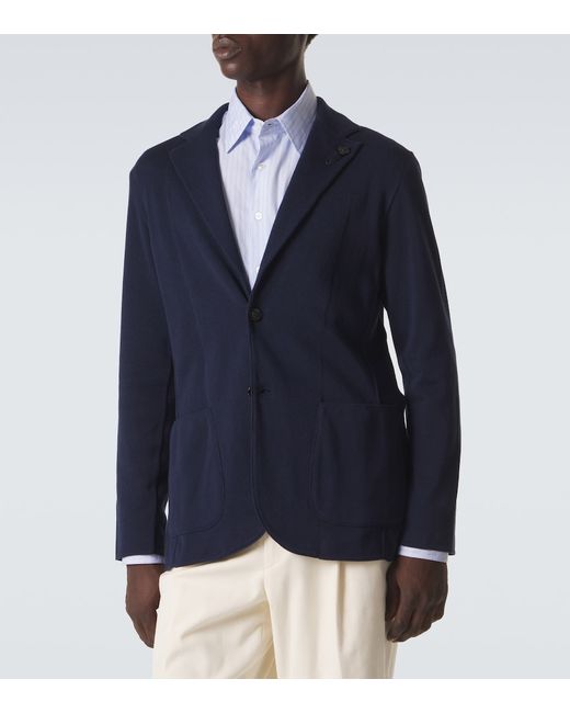 Material: 100% cotton. Care instructions: dry clean. Made in Italy. Designer color name: Navy. Notched lapel. Closure: buttoned front. Pockets: patch pockets. Cotton. Vent: double.