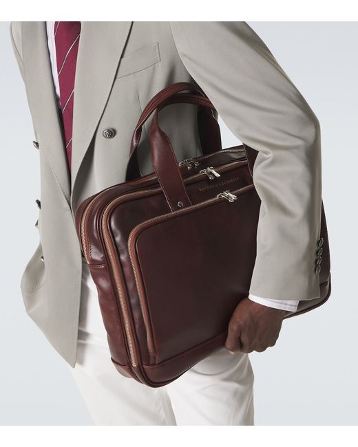 Material: calf leather. Lining: fabric. Made in Italy. Designer color name: Burgundy. Hardware color: silver. Closure: two-way zipped top. Internal details: internal zipped and slot pockets, Card slots. Top handles. Includes: dust bag. Leather.