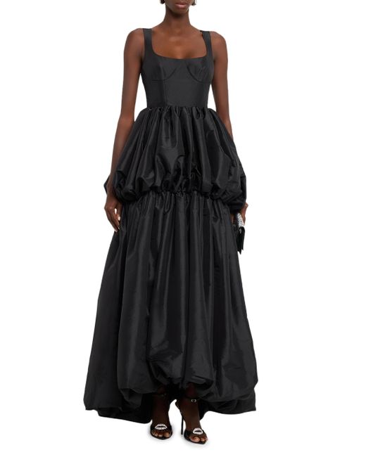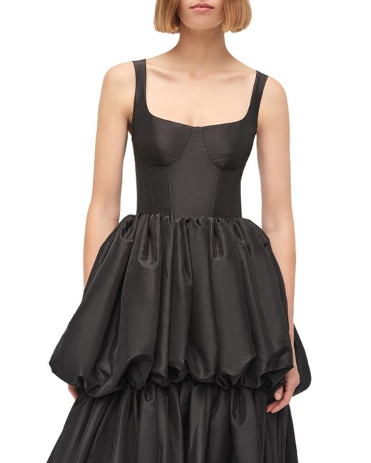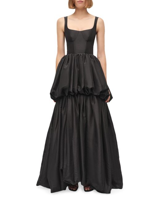 From SIMKHAI, this taffeta gown is crafted with a structured bodice and dramatic tiered bubble skirt, creating a sculptural silhouette with bold volume. Scoop neckline Sleeveless Tiered bubble skirt High-low hem Full length Invisible back zipper Polyester/nylon/polyamide/rayon/cellulose acetate Dry clean Imported SIZE & FIT Maxi length A-line silhouette Model measurements: 5'10" tall Model is wearing a US size Small. Dress Collections - Contemporary Evening > Simkhai > Saks Fifth Avenue. SIMKHAI. Color: Black. Size: 2.