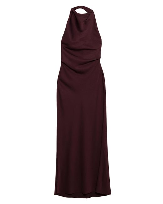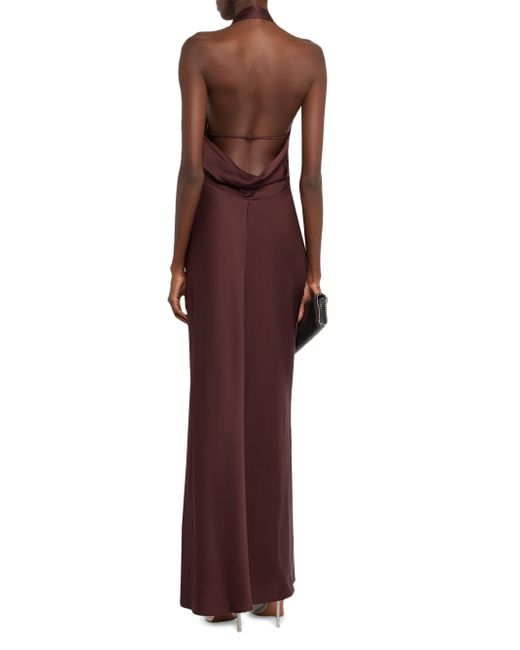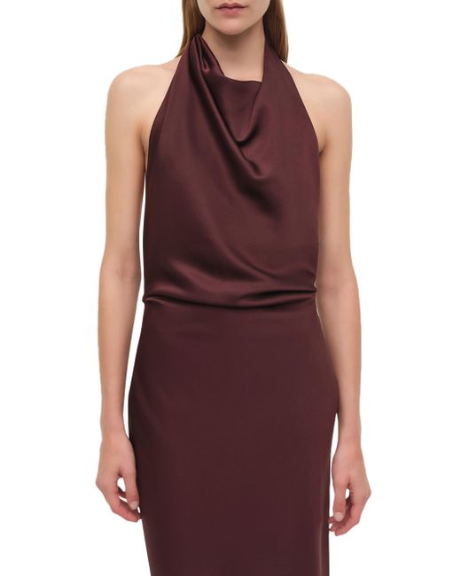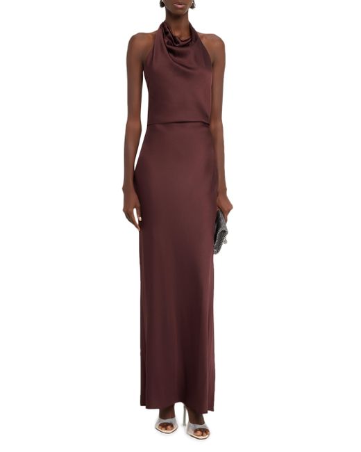 From SIMKHAI, this satin gown is designed with fluid front and back draping and an open back for an elegant, sculptural silhouette. Halter cowl neckline; hook-and-eye closure Sleeveless Open back Full length Hidden side zipper Acetate/polyester Dry clean Imported SIZE & FIT Maxi length Column silhouette Model measurements: 5'10" tall Model is wearing a US size Small. Dress Collections - Contemporary Evening > Simkhai > Saks Fifth Avenue. SIMKHAI. Color: Red. Size: 12.