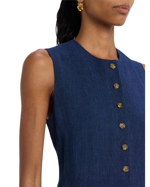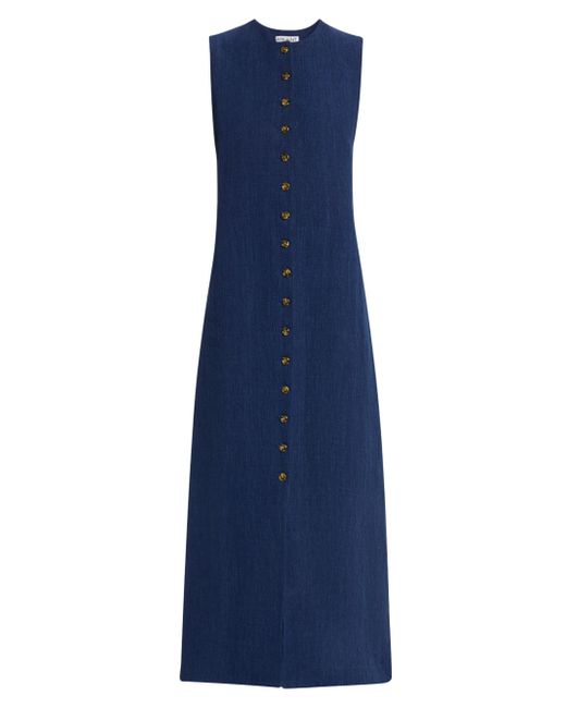 This button-front midi-dress from Argent is crafted of denim-inspired linen. Round neck Sleeveless Back slit Button-front closure 100% linen Lining: 100% cupro Dry clean Made in USA SIZE & FIT About 48" from shoulder to hem Model measurements: 5'10" tall Model is wearing a US size 4. Modern Collections - Modern Coll > Argent > Saks Fifth Avenue. Argent. Color: Blue. Size: 2.