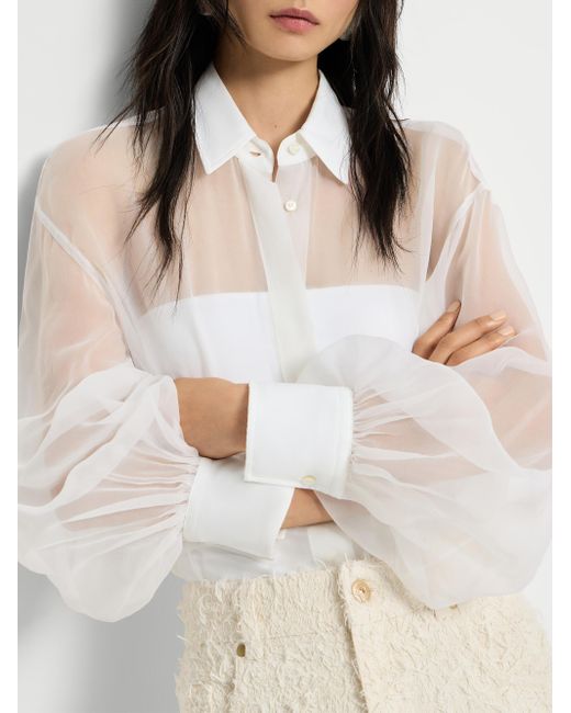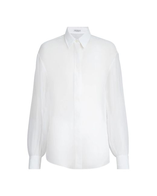 Crispy silk shirt with monili. Concealed button closure Classic collar Cuffs have one mother of pearl button Nickel-free monili decoration Request dry cleaning at specialist cleaner's only, do not bleach. Do not tumble dry, iron at low temperature 100% silk Made in Italy. Lsd Rtw - Brunello Cucinelli Rtw > Brunello Cucinelli > Saks Fifth Avenue. Brunello Cucinelli. Color: White. Size: XXS.