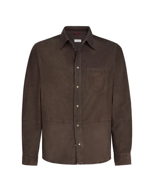 Suede overshirt. Snap closure Shirt-style collar Snap cuffs Upper patch pocket Unlined Go to specialized facilities for cleaning. Do not dry clean. Do not bleach, do not tumble dry. Iron at low heat 100% real leather Made in Italy. Lsd Rtw - Brunello Cucinelli Rtw > Brunello Cucinelli > Saks Fifth Avenue. Brunello Cucinelli. Color: Espresso. Size: Medium.