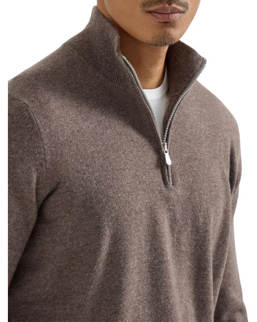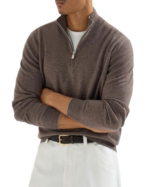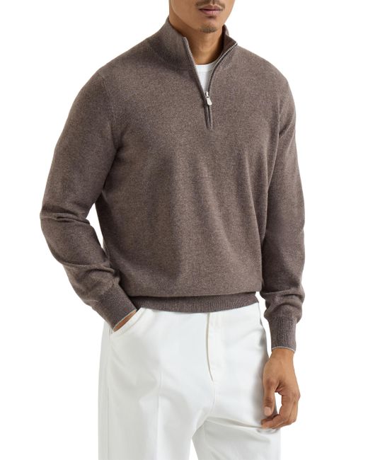 Cashmere sweater with half zip. Zip opening High collar in rib knit Rib knit cuffs and bottom band Plain stitch Hand wash only, do not bleach. Dry garment on a horizontal surface, do not tumble dry. Iron at low temperature. Alternatively, delicately dry clean garment 100% cashmere Made in Italy. Lsd Rtw - Brunello Cucinelli Rtw > Brunello Cucinelli > Saks Fifth Avenue. Brunello Cucinelli. Color: Brown. Size: 30.