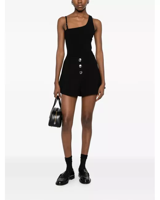 black press stud fastening silver-tone hardware paneled design short length topstitching details