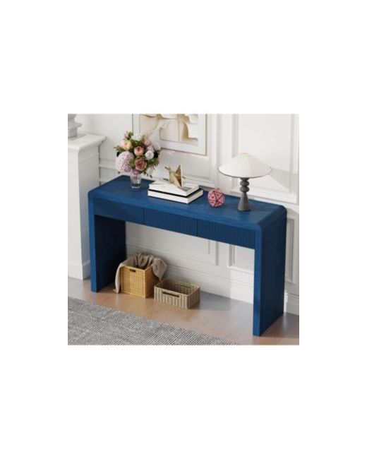 Fluted console table: Rustic charm meets modern minimalism. Solid wood veneer, 220lb top, 25lb drawers. Stylish storage for any space!