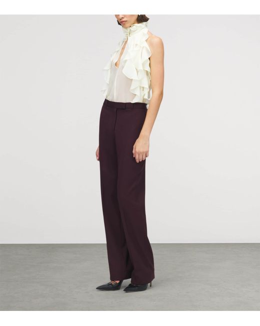 McQueen turns its tailored expertise toward everyday versatility with these impeccably cut wool trousers. The high-waisted silhouette creates a clean, elongated line, while the straight leg offers a polished shape that moves seamlessly from the office to more elevated daily dressing.