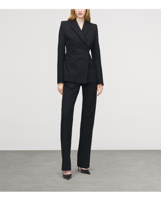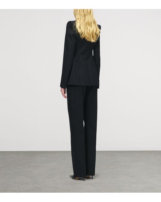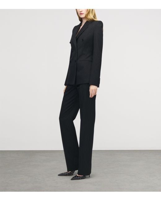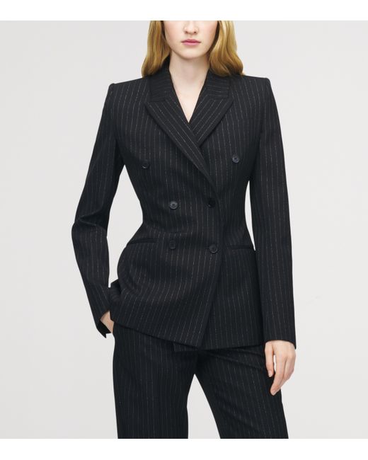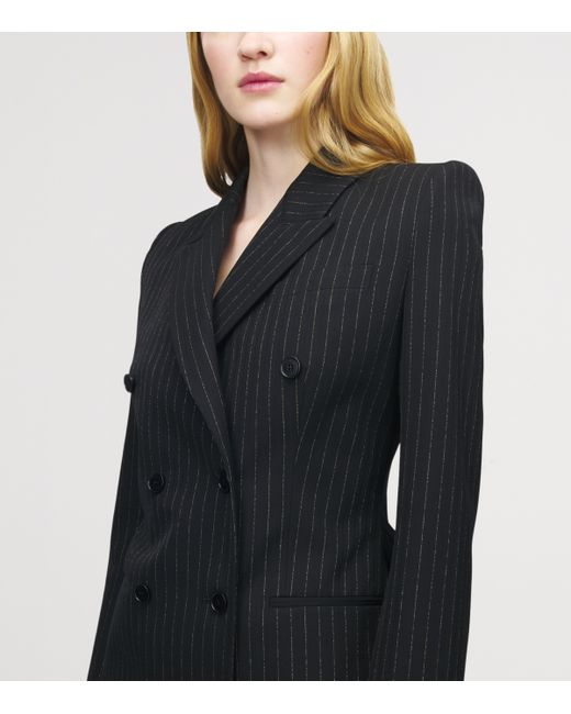 Alexander McQueen started his incredible fashion journey in the heart of London's tailoring district - Savile Row - and has gone on to create a namesake brand renowned for its poise and strong silhouettes. This double-breasted blazer is cut to perfection, crisply crafted from virgin wool and adorned with a metallic gold pinstripe pattern.