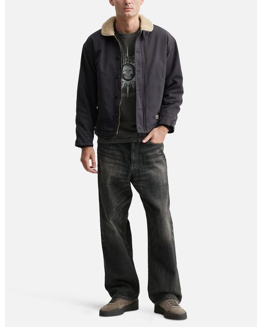 NEIGHBORHOODN-1 Deck JacketMade of sulfur-dyed German cord clothNatural fading effect over timeCollar made of boa fabricBranded buttoned and zipper closureInner ribbed details at cuffsTwo front pocketsBrand tag on front and side seamHem with drawcordPrinted distressed-style logo at the backQuilted liningColor: Black