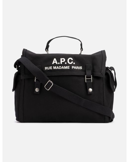 A.P.C.Recuperation SatchelMade of raw cotton canvasMilitary-styleOne handleMain compartment with snap button closure'A.P.C. Rue Madame Paris' printed logoTwo side pocketsOne interior zip pocketOne snap pocket at backAdjustable shoulder strapColor: Black