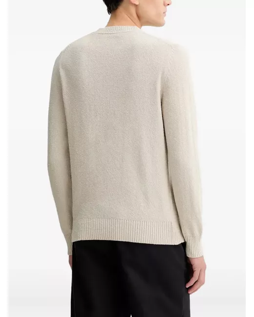 beige textured knit crew neck ribbed hem ribbed cuffs