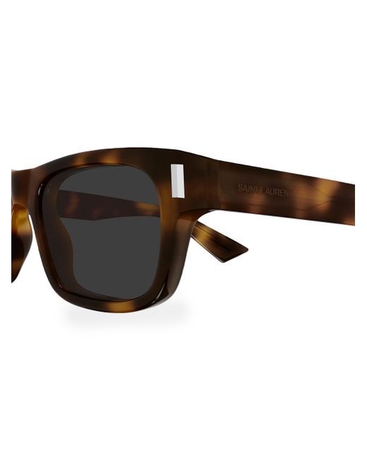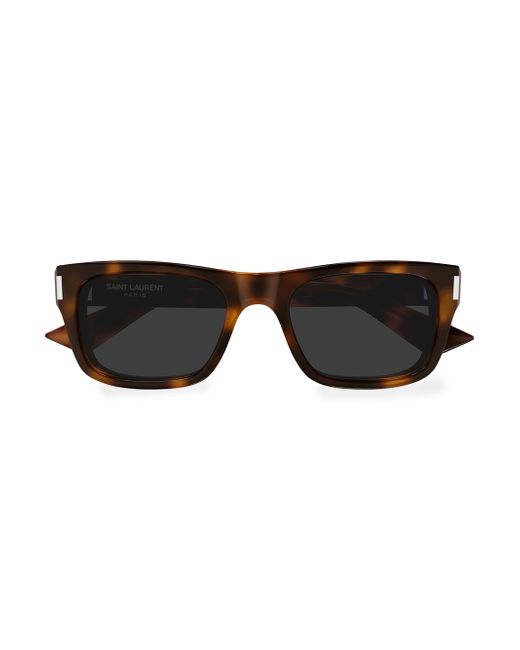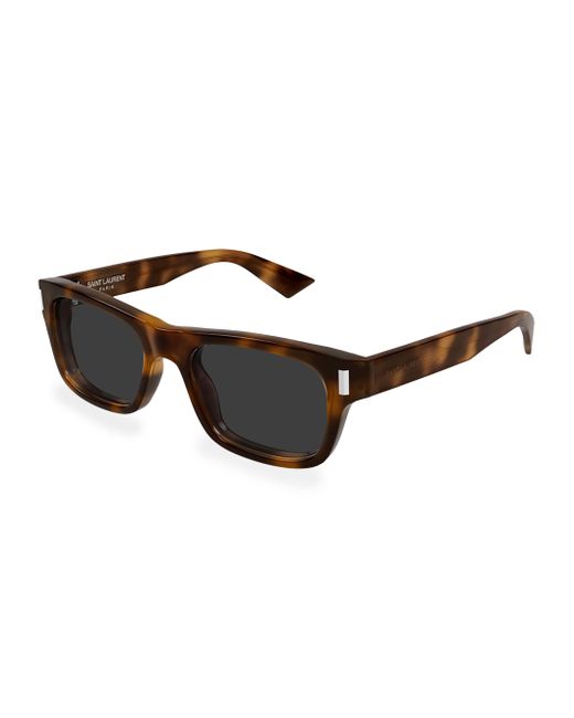 Made in Japan, these Saint Laurent tortoiseshell sunglasses are designed in a rectangular silhouette and styled with engraved logo at the temples. 100% UV protection Solid lenses Plastic Made in Japan SIZE 53mm lens width 18mm bridge width 145mm temple length. Soft Accessories - Men Sunglasses > Saint Laurent > Saks Fifth Avenue. Saint Laurent. Color: Havana.