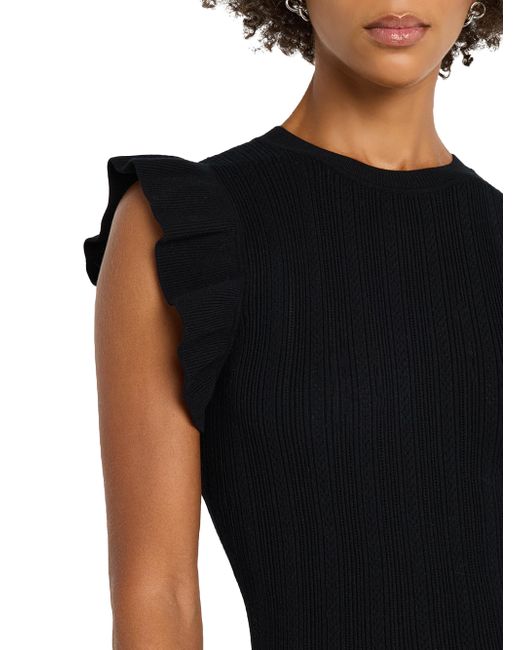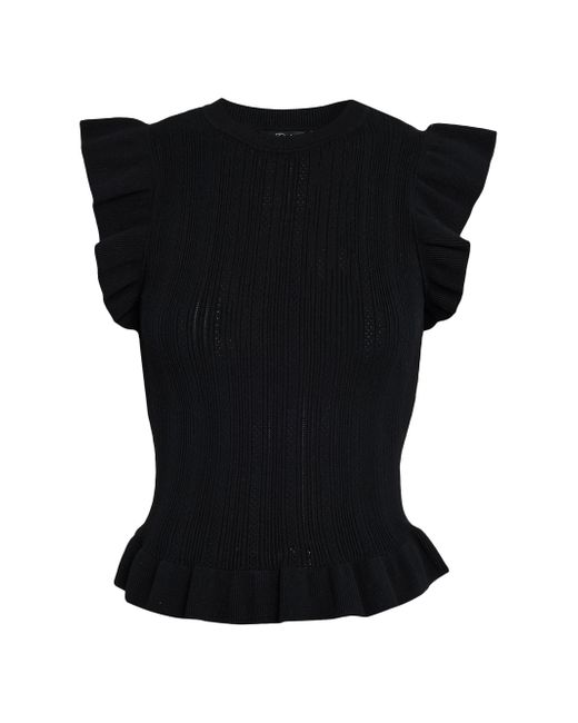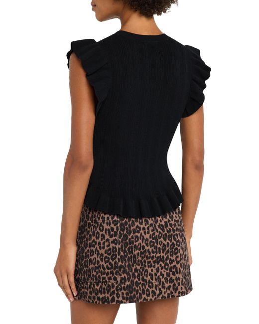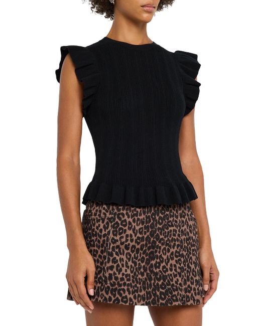 Rails' Marci knit top features a fitted silhouette, flutter cap sleeves, and a peplum hem. Round neck Flutter cap sleeves Peplum hem Pulls over Promodal rayon/polyester/elastane Hand wash Imported SIZE & FIT About 24" from shoulder to hem Model measurements: 5'10" tall Model is wearing a US size Small. Contemporary Sportswear - Casual Separates > Rails > Saks Fifth Avenue. Rails. Color: Black. Size: XS.