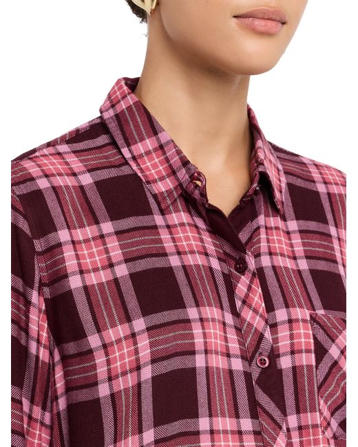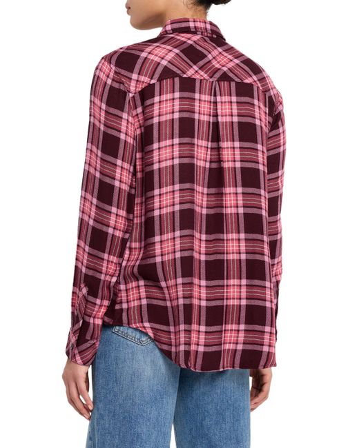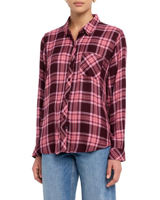 This Hunter shirt from Rails features a plaid pattern, chest patch pocket, and shirttail hem. Spread collar Long sleeves, button cuffs Chest patch pocket Shirttail hem Button-front closure Rayon/cellulose acetate Hand wash Imported SIZE & FIT Model measurements: 5'10" tall Model is wearing a US size Small. Contemporary Sportswear - Casual Separates > Rails > Saks Fifth Avenue. Rails. Color: Mauve Mulberry. Size: XS.