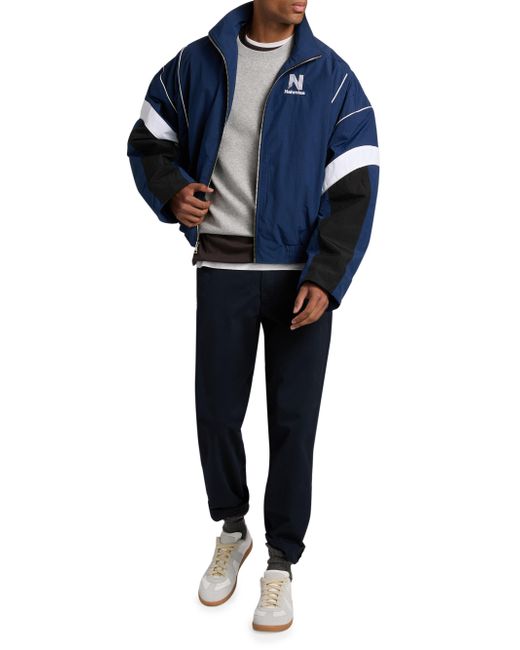 Nahmias' Warm Up Jacket is crafted of a nylon and cotton blend with contrast piping and embroidered logo detailing. Stand collar Long sleeves Side on-seam pockets Elasticized hem Front zip closure 74% Nylon/26% cotton Machine Wash Made in USA SIZE & FIT Model measurements: 6'2" tall, 40" chest, 31" waist Model is wearing a US size Medium. Mens Adv Contemporary - Advanced Contemp Collect > Nahmias > Saks Fifth Avenue. Nahmias. Color: Cobalt Blue Nylon. Size: Small.