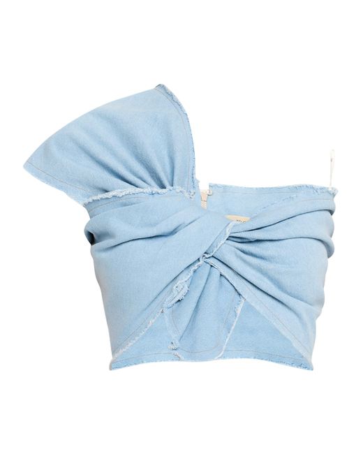 Crafted of cotton, JBQ's Sol wrap top features a one-shoulder neckline and raw-edge trim. One-shoulder neckline Sleeveless Back zip closure Cotton Dry clean Made in USA SIZE & FIT Model measurements: 5'10" tall The model is wearing a US size Small. Contemporary Sportswear - Casual Separates > Jbq > Saks Fifth Avenue. JBQ. Color: Sky. Size: Medium.
