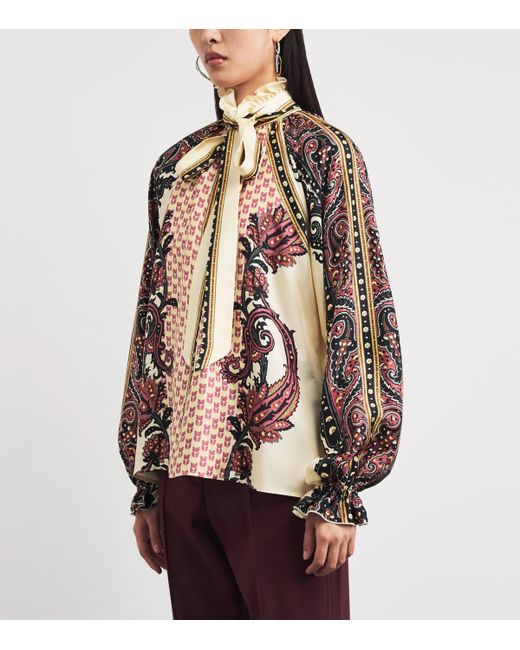 Etro is an Italian label that champions a maximalist aesthetic through its bespoke prints and antique-inspired patterns. The blouse silhouette is a brand favourite - and this season, micro florals clash with bold paisleys in a playful expression of creativity.