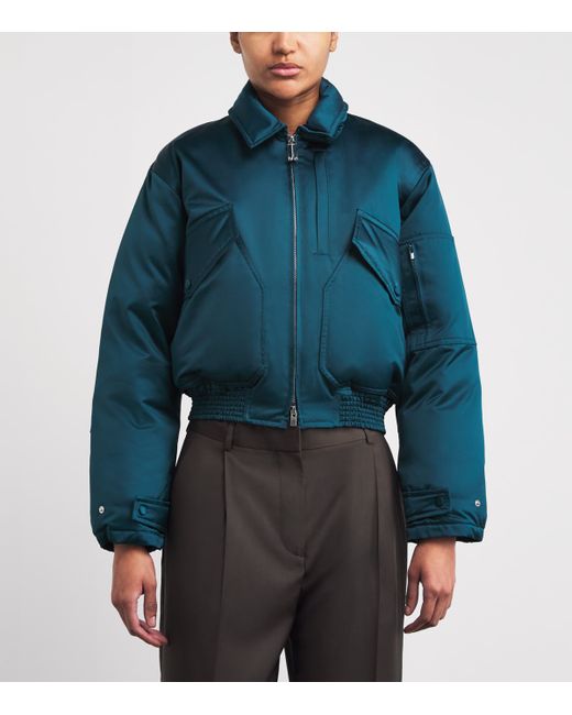 Established in 2008, Victoria Beckham has since become a firm favourite of the contemporary woman, offering versatile pieces to her wardrobe like as this padded bomber jacket. Set in a striking shade of teal, the cotton sateen shell houses a sumptuous blend of duck down and feathers, shielding you from the cold with sophisticated warmth.