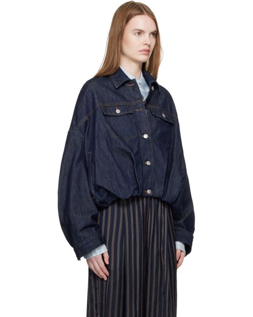 Non-stretch denim jacket. · Spread collar · Button closure · Button flap pockets at chest · Welt pockets at waist · Partially elasticized bubble hem · Dropped shoulders · Barrel cuffs · Patch pocket at interior · Partial twill lining · Contrast stitching in tan Supplier color: Indigo