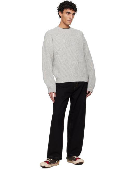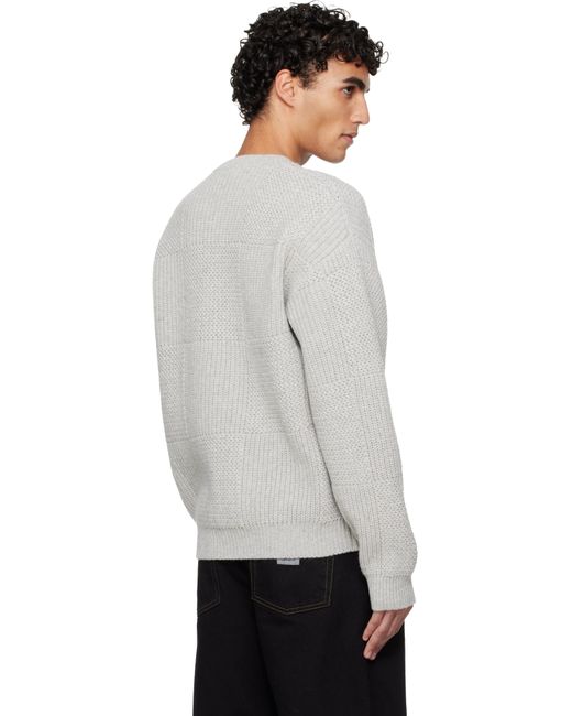 Knit wool-blend sweater. · Knit patchwork throughout · Rib-knit crewneck, hem, and cuffs · Logo patch at hem · Dropped shoulders Supplier color: Puddle