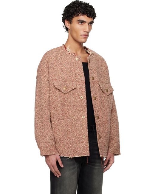 Wool-blend tweed jacket. · Raw edge at round neck and hem · Press-stud closure · Flap pockets at chest · Patch and welt pockets at waist · Dropped shoulders · Buttoned barrel cuffs · Full sherpa fleece lining · Logo-engraved gold-tone hardware Supplier color: Red/Cream
