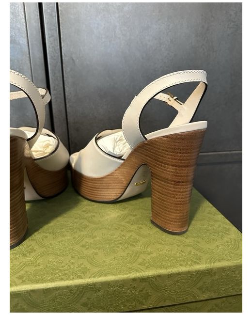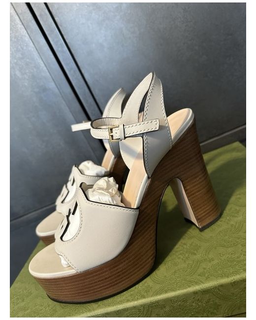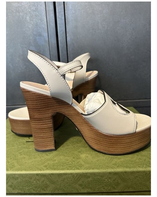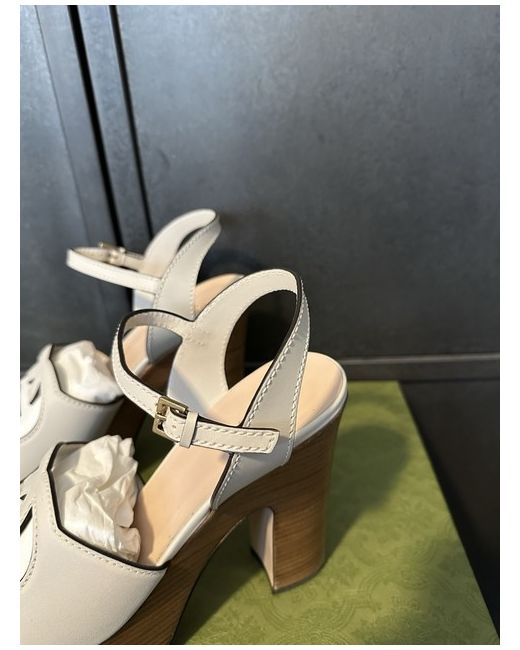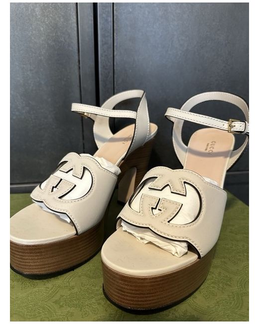 These Gucci Women’s White Leather Interlocking GG Platform Heels in size 8UK/EU41 are a stylish and elegant choice for any woman. Made in Italy, these high heels feature a platform style with a leather upper material in a crisp white colour. Perfect for adding a touch of luxury and sophistication to any outfit, these Gucci heels are a must-have for any fashion-forward woman.