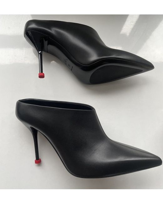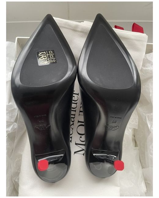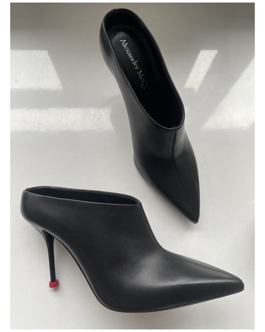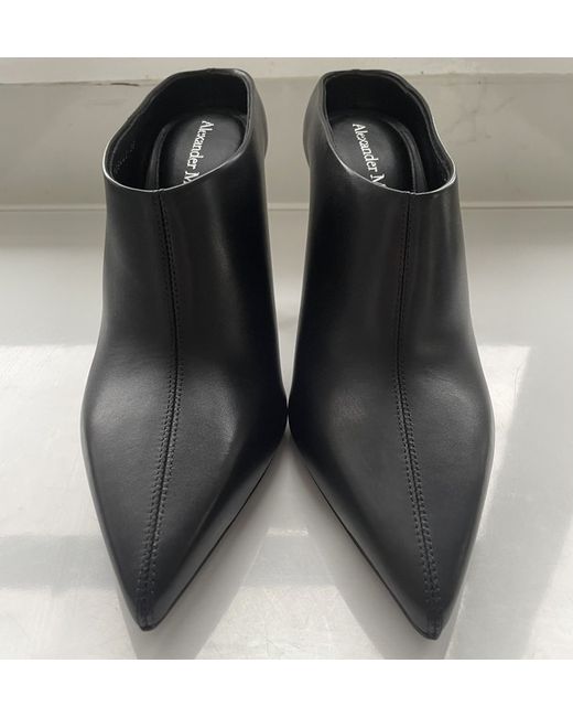 Stunning Alexander McQueen mules in black leather. Heel height about 9.5cm. Brand new with box and shoe bags and spare heel tips. Made in Italy. Size 38 / U.K. 5