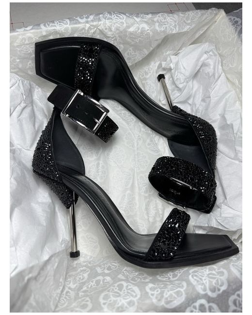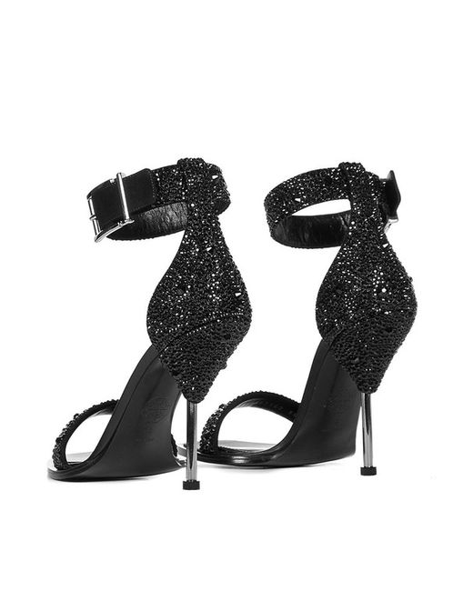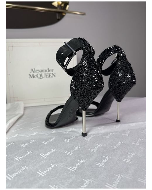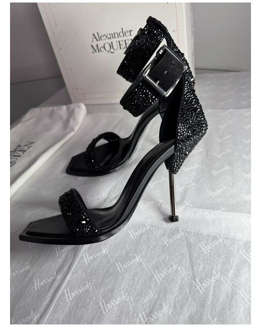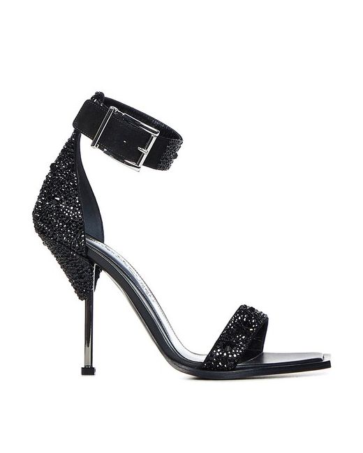 Alexander McQueen Crystal Embellished Double Strap High Sandals. Alexander McQueen updates your evening edit with these chic Embellished double strap sandals. Closure with adjustable ankle strap with square buckle square.
