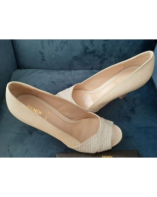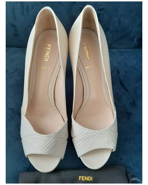 Women's Beige Cream Canvas 36 With Python Peep-Toe Court Shoes