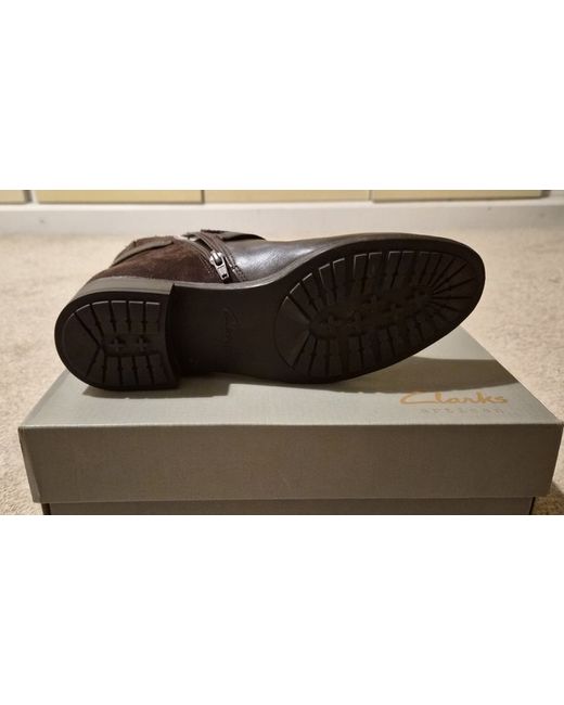 Brand new women's boots by Clarks. These ankle boots in brown leather feature a round toe and standard shoe width, making them perfect for casual occasions during the winter season. With a UK shoe size of 5.5, these stylish booties are a must-have addition to any woman's footwear collection. Upgrade your wardrobe with these versatile and trendy boots that can be worn for multiple occasions.