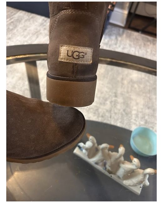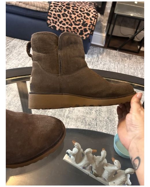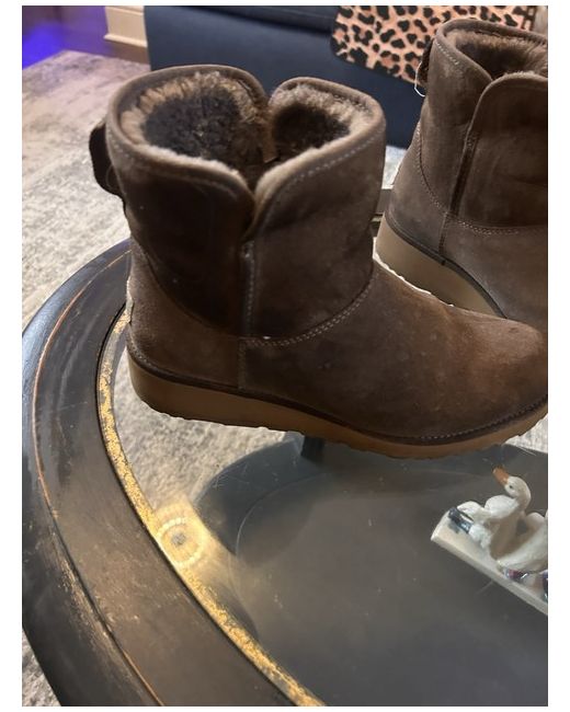 The Genuine UGG Kristan Boots are a stylish and comfortable choice for women in UK shoe size 6.5. Featuring a round toe, pull-on closure, and sheepskin lining, these brown suede boots from UGG Australia are perfect for casual winter occasions. With a rubber outsole and logo accents, these classic Ugg boots offer both fashion and functionality in a standard width fit. Ideal for the colder months, these booties are a must-have for any woman looking for a versatile and high-quality footwear option.