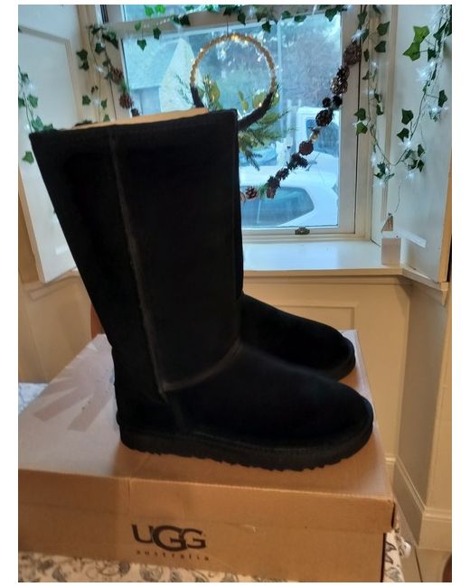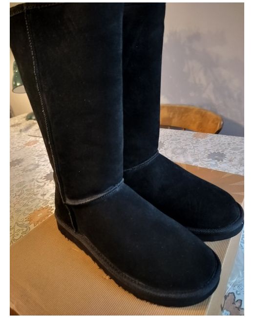 The Ugg Australia Boots in size 7.5 are a stylish and comfortable choice for women looking for a casual winter boot. Made with black suede, round toe shape and featuring the signature UGG Australia logo, these shearling style boots are perfect for adding a touch of luxury to your wardrobe. With a standard shoe width and rubber outsole, these boots are both fashionable and practical for everyday wear. Perfect for keeping your feet warm and adding a touch of sophistication to any outfit.