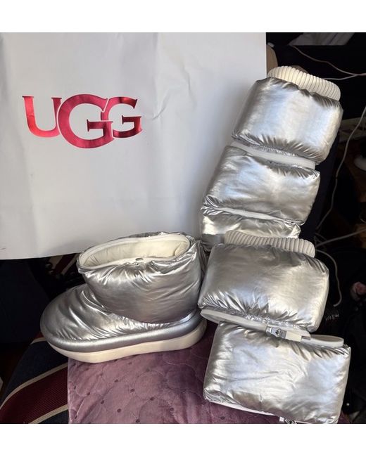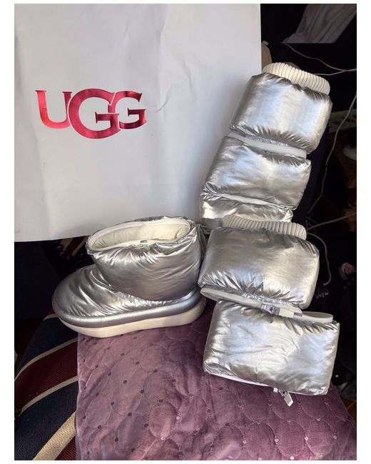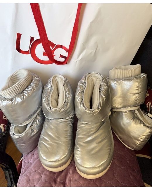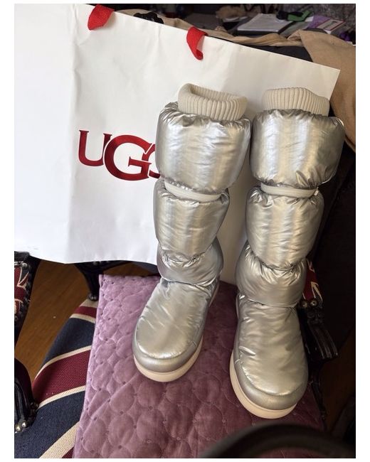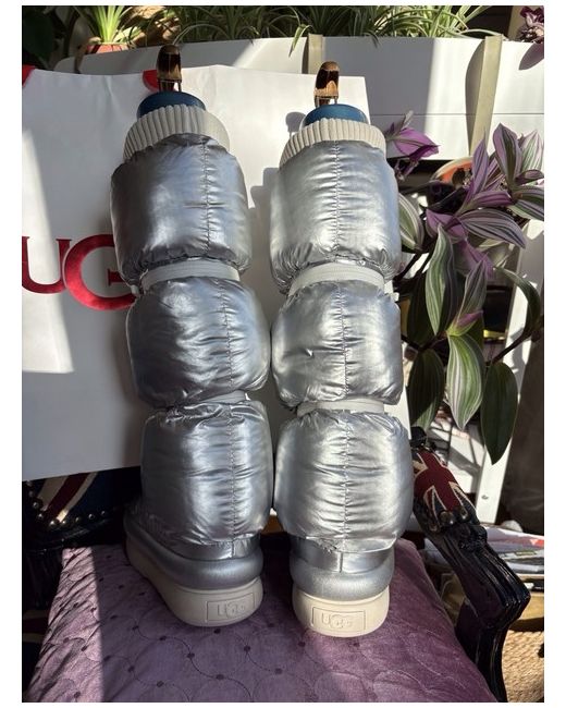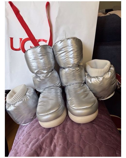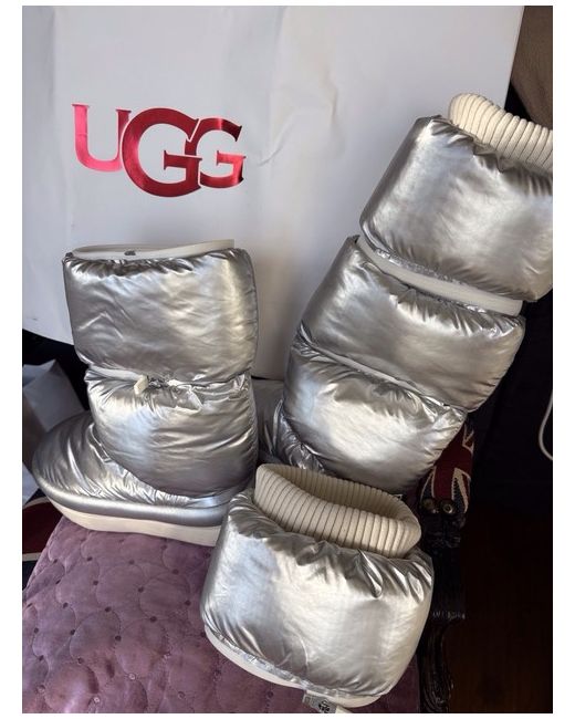 NEW Ugg metallic silver moon boot uk size 4 Unzips into mid calf and short bootie. Comes without box but with original Ugg carrier bag