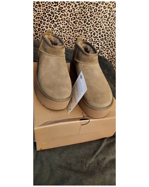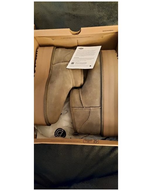 The UGG Australia Classic Mini boots are a stylish and versatile choice for the winter season. With a round toe shape, pull-on closure, and low heel height, they are perfect for casual occasions. The ankle shaft style, lined with sheepskin, provides comfort and warmth, while the suede upper material with logo accents adds a touch of luxury. Made with a rubber outsole and wool insole, these brown boots are a must-have for any woman's shoe collection. The UGG Australia Classic Mini boots are a perfect blend of fashion and functionality, embodying the brand's commitment to quality and style.