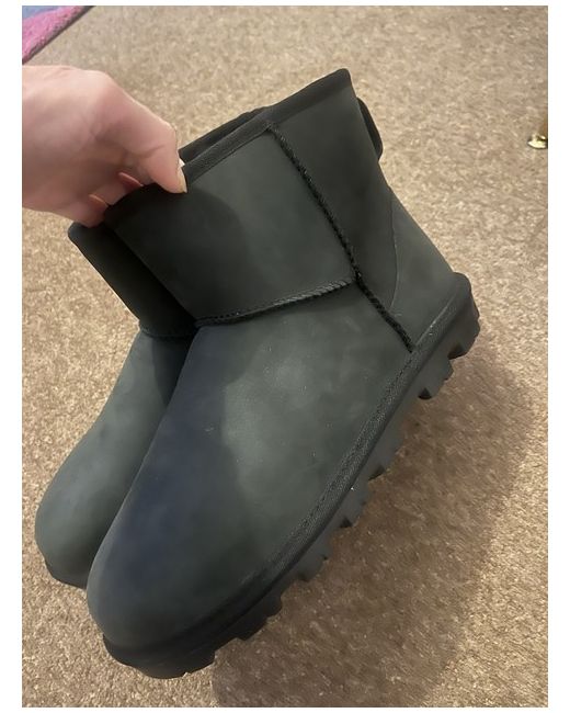 These UGG Women's Boots in UK size 8 are the perfect addition to any winter wardrobe. With a stylish ankle shaft, round toe shape, and suede upper material, these black boots are designed for casual occasions. The sheepskin lining and rubber outsole provide comfort and warmth, making them ideal for the colder seasons. Branded with the iconic UGG Australia logo, these boots combine fashion and functionality for a versatile style. They’re charcoal almost black