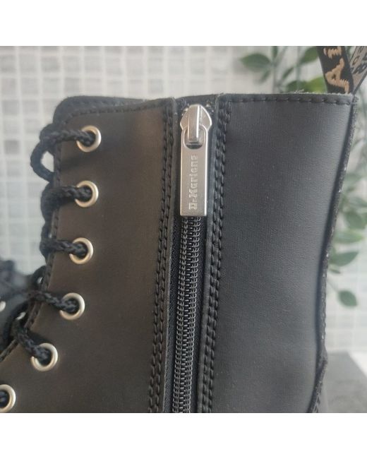 UK Size 8. These soft boots are rubbish. With durability that we’ve tested to destruction. This 8-eye Jadon boot has an inner ankle zip and scripted heel loop set on a decade-defying Quad platform sole with a contrast yellow welt stitch.