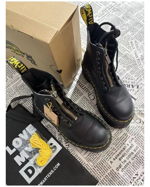 The product is a pair of Dr. Martens Sinclair black boots in size 6.5. They are designed for women and are made of leather with a combat style. These boots come in their original box and are a classic and edgy addition to any wardrobe. The brand, Dr. Martens, is well-known for its durable and stylish footwear, making these boots a reliable and fashionable choice for any woman looking to make a statement with their footwear.