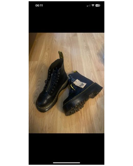 These Dr. Martens Women's Leather Sneakers in size 4 are perfect for a casual occasion, with a low heel height and ankle shaft style. Made from black leather, they feature a round toe shape and standard shoe width. The platform style and rubber outsole provide comfort and stability, making them ideal for all-day wear in the spring season. With the iconic Dr. Martens brand, these sneakers are a stylish and versatile addition to any woman's wardrobe.