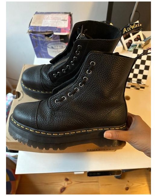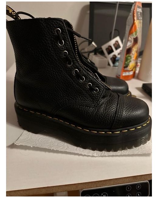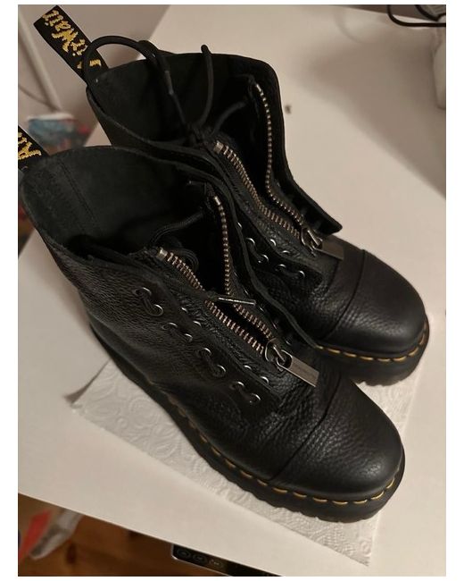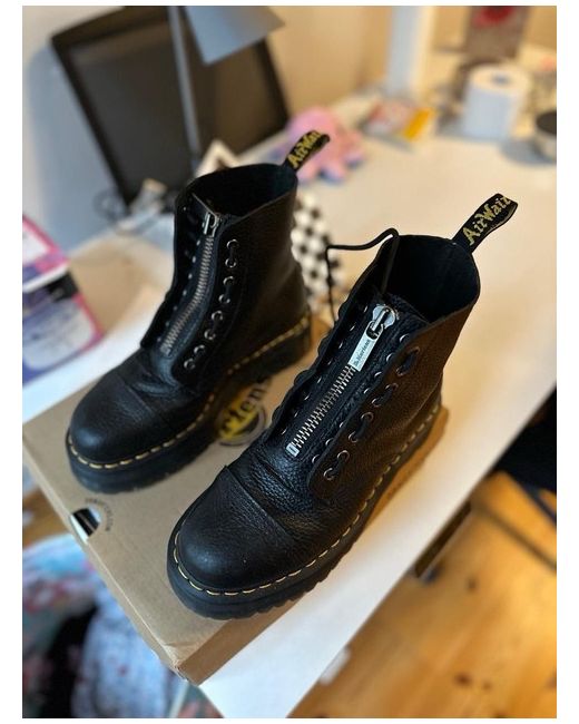 The Dr. Martens Sinclair Size 7 Women's Platform Boot in Black is a stylish and versatile choice for any woman's wardrobe. With its ankle shaft style, round toe shape, and zip closure, these boots are perfect for both party occasions and casual wear. The platform height of 4 cm adds a trendy touch, while the leather upper material and rubber outsole ensure durability and comfort. The black colour and minimalist design make these boots easy to match with a variety of outfits, making them a must-have for any fashion-forward woman.