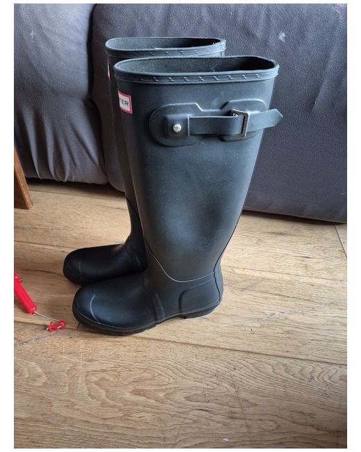 The Hunter Original Tall Boot for Women in size UK 7 and black colour is a stylish and functional option for casual occasions. With a knee-high shaft and slip-on closure, these boots feature a closed toe and a low block heel for added comfort. Made with waterproof rubber upper and outsole material, these wellies from the renowned brand Hunter offer a durable and practical option for women looking for a versatile boot.