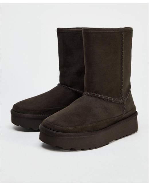 These Zara Platform Ankle Boots in size 5 are brand new with tags, featuring a stylish brown colour with a lined interior for added comfort. Perfect for casual occasions during the winter season, these boots are made from polyester with a standard shoe width. The ankle shaft style and platform design add a fashionable touch to your outfit, making them a versatile and trendy addition to your wardrobe. Treat your feet to these chic and practical boots from Zara.