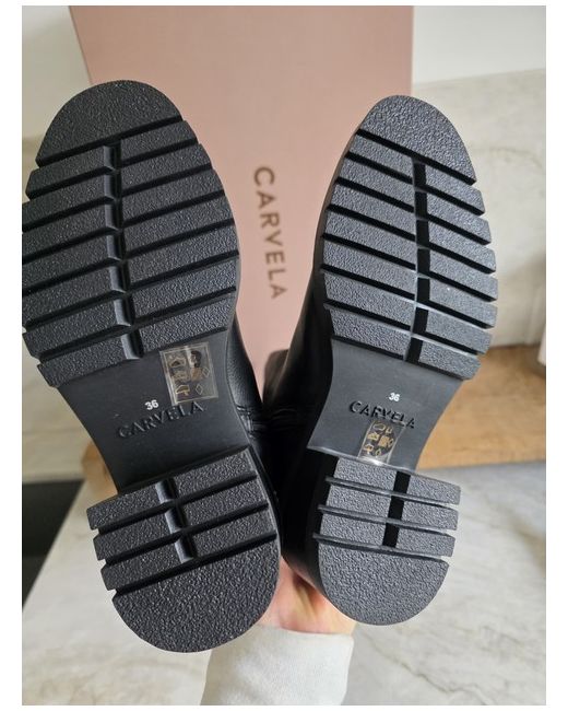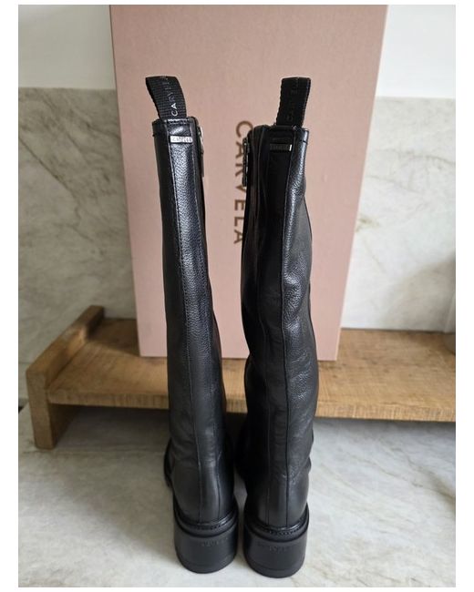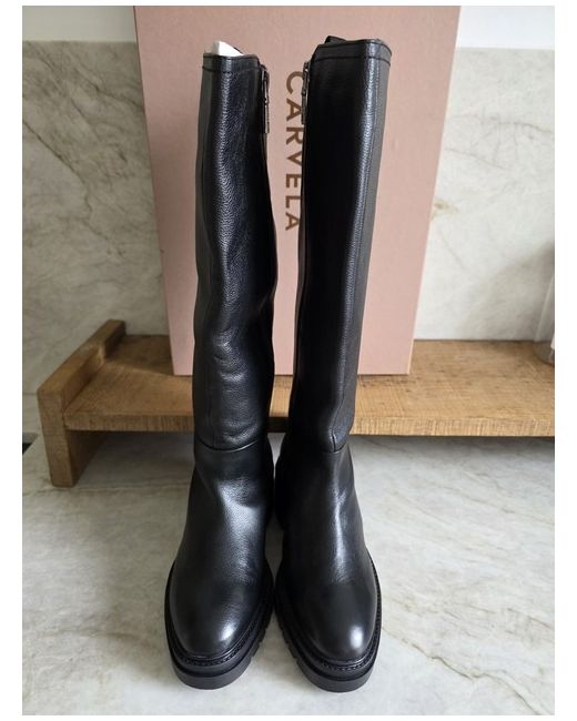 Stunning pair of Carveka Knee High Boots in a Black Leather. Boots are new never worn as shown. box does has small marks to it as shown due to storage.