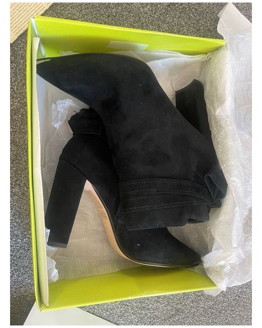 These Ted Baker Women's Ankle Boots are in size UK 8 and EU 41. They feature a pointed toe design and a high heel, making them perfect for any occasion. The black suede boots with leather insole offer a stylish and fashionable option for women looking to add a touch of elegance to their outfit. With the Ted Baker brand known for quality and sophistication, these boots are a versatile choice for the modern woman.