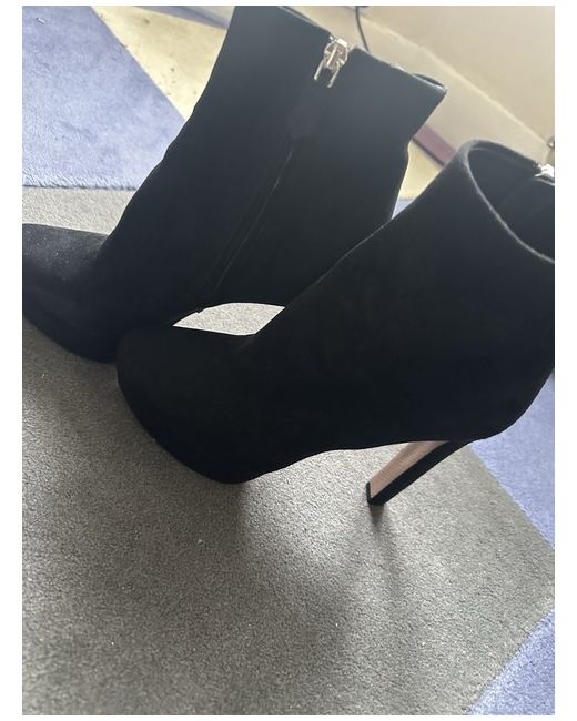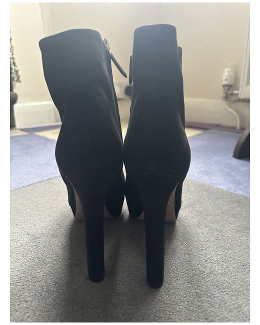 Black Suede heel ankle-length Prada boots. Triangle branded logo on rubber sole. Brand new without tags or box. Never worn. Shop storage marks/defects. No alterations, unworn, and unwashed. No serial number. Only Royal Mail signature required.