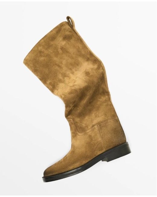 Women's Brown Suede Boots Camel Leather Split Riding 6