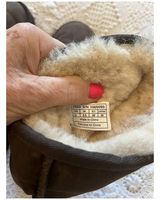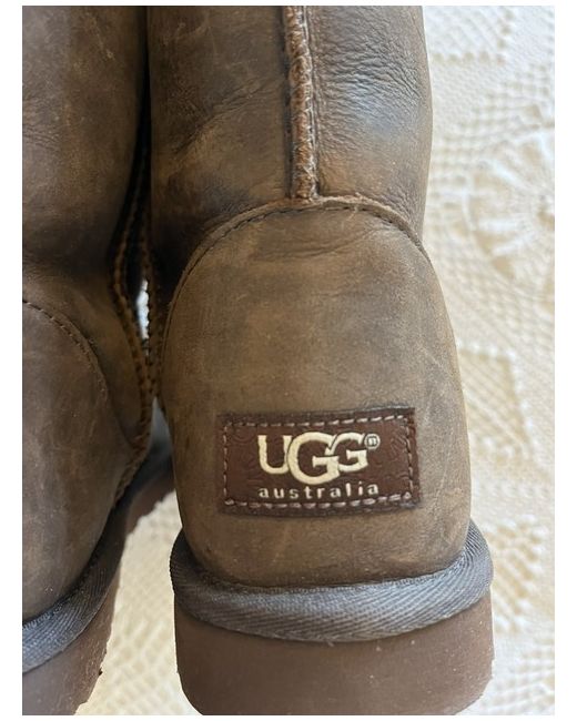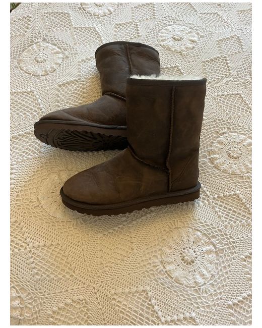 These Classic Uggs are absolutely gorgeous they are brown slightly distressed leather giving a vintage look . They would team well with a vintage aviator flying jacket . Purchased in New York whilst on a fashion shoot but never worn . Bang on trend for this Autumn Winter . They were sterling equivalent of £185 but would accept ££75. Beautifully sheepskin lined . Uk 6.5. US 8