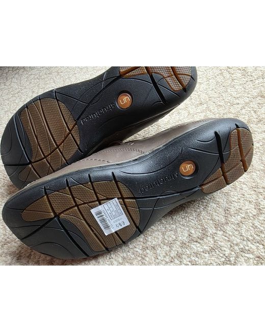 Clarks Un Loop unstructured shoes. A durable leather upper and an Unstructured® slip-on profile make it easy to pop on, while its super-soft foam footbed and grippy sole support your every move. Premium Unstructured® black leather upper.