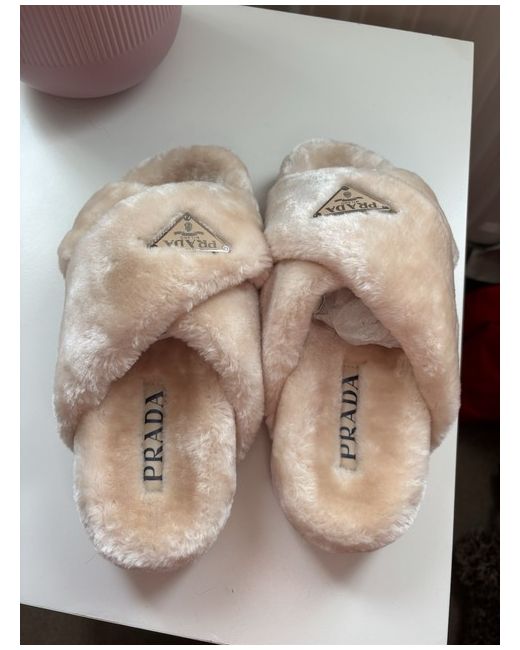 The Prada Soft Shearling Beige Mules in size 38 are stylish and comfortable flat shoes perfect for casual occasions. Made with faux fur shearling fabric, these sliders feature a trendy slider style with a classic beige colour. Designed for women with a UK shoe size of 5/6 and an EU shoe size of 38, these mules are a fashionable choice without the need for customisation. The Prada brand ensures quality and sophistication in every step. Includes dust bag and box. Price reflects authentication.