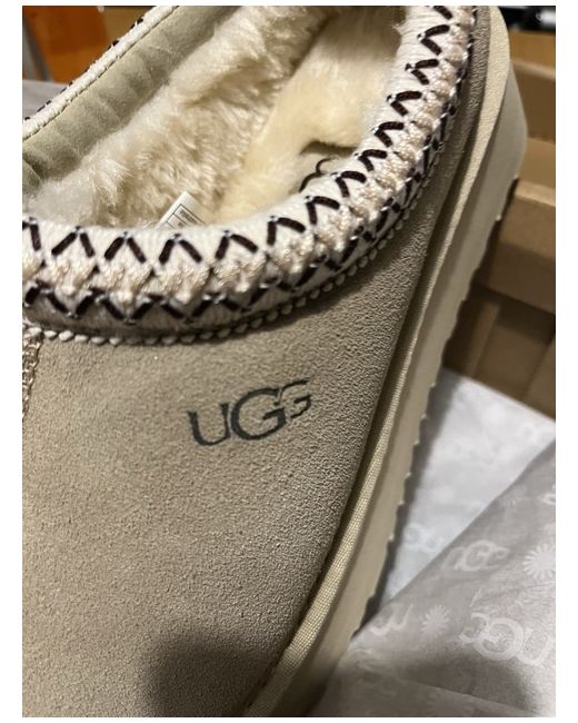 Beautiful Ugg Tazz slippers, size 6. Bought as a gift for my daughter she wants the darker ones. Very comfy. Never be used just tried on. Perfect condition. Brand new in the box with all wrapping.